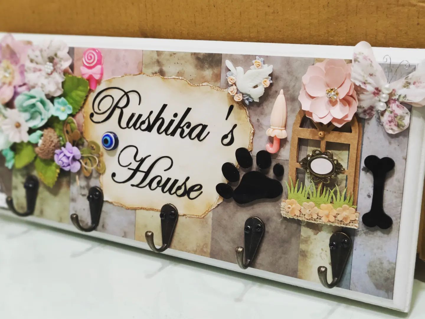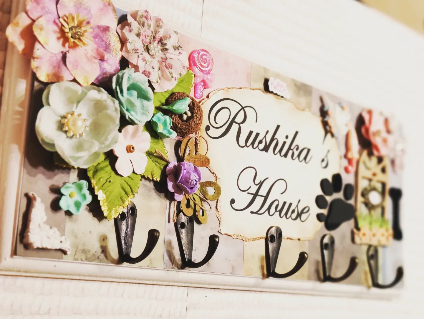 This decorative Key holder for your home with 5 hooks, created, keeping in mind, the decor of your entrance wall. Comes with exclusive embellishments and flowery decorations that suit your taste.