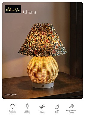 Add a touch of bohemian charm to your space! This stylish lamp features a woven rattan base and a gorgeous floral lampshade. It's cordless, USB-C rechargeable, and perfect for creating a cozy, warm glow anywhere you need it.