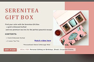 Find your calm in a box. The Serenitea Gift Box is your perfect peaceful escape, featuring a gold-embossed kulhad and two premium teas. It’s the ultimate way to show someone you care—or to treat yourself to a moment of bliss.