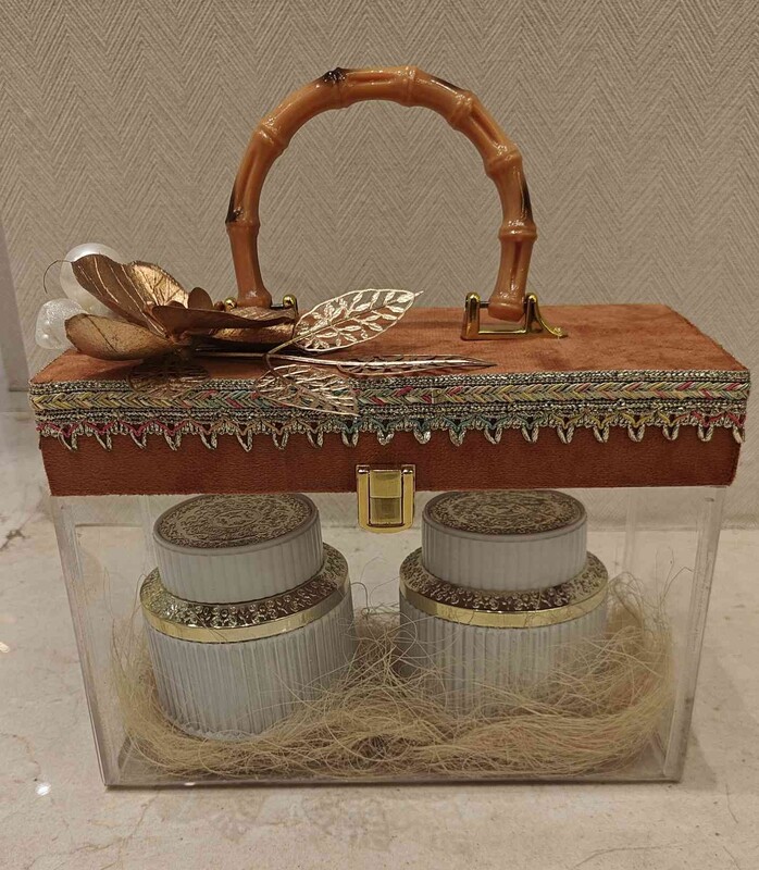 The baskets or boxes that are used in gift hampers.