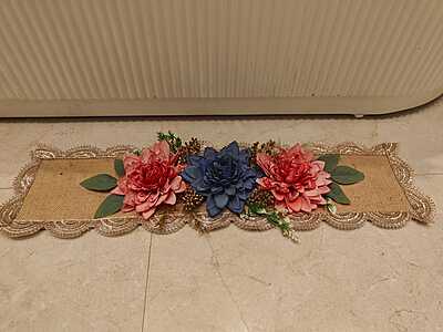Wall Hanging Orange Flower Bunch With White Lace Bow