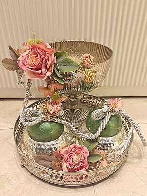 A Tray with 2 bowls for elegant placement near dining or drawing. Great for gifting.