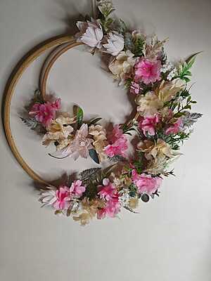 Bring rustic charm and bohemian vibes to your walls! ✨ This beautiful handmade floral hoop, crafted with natural jute, a delicate lace bow, and vibrant flowers, adds a pop of color and personality to any room. It's the perfect accent for your entryway, bedroom, or as a thoughtful gift. Add a touch of handmade elegance to your space!