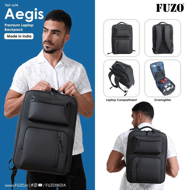 Meet your new everyday carry. The Fuzo Aegis is the ultimate premium laptop backpack. Made in India, it’s sleek, spacious, and built to protect everything you need for work or a quick overnight trip.