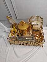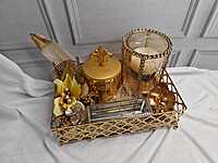 Luxury Decorative Golden Tray with Candle, Metallic Accents