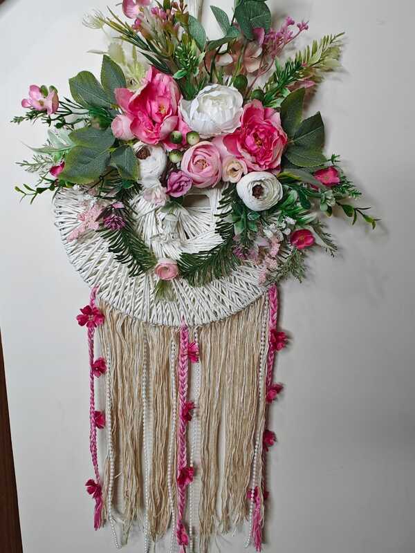 Boho Floral Wall Hanging with Pink Blossoms