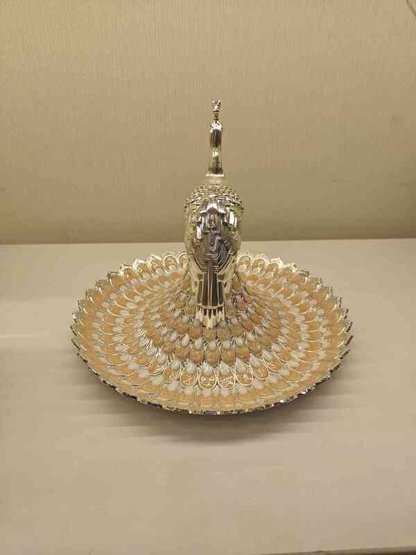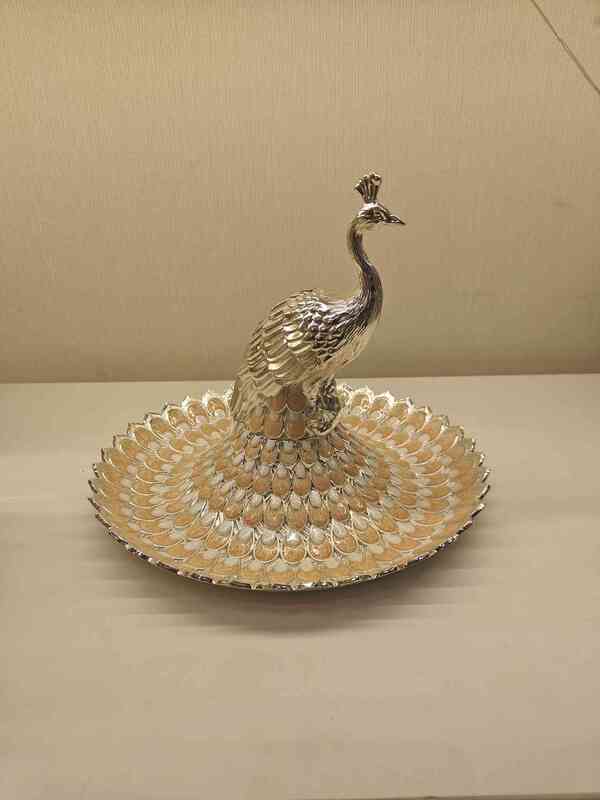 Very exclusive all occasion gift made of every lasting German Silver. It contains a large size peacock of approximate size 10 inches x 10 inches x 8 inches.