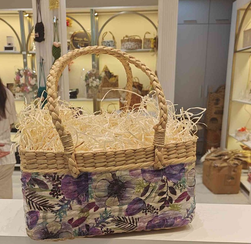 Round Woven Basket with Red Rose Floral– Decorative & Functional Storage"