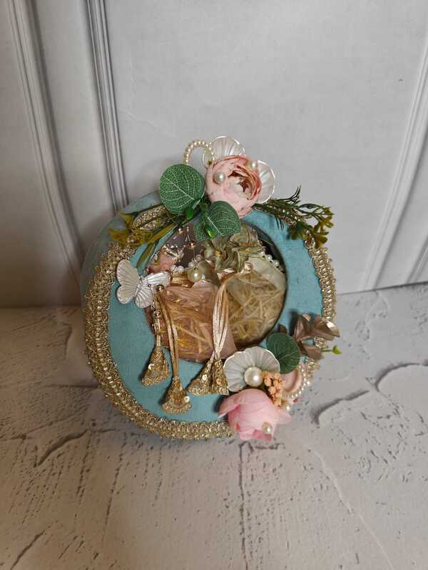 Teal and Golden Lace with pink Flowers Decorative Gift hamper