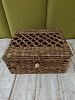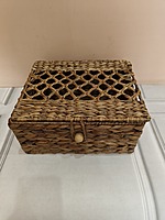 Handwoven Storage Box with Lid & Button Closure