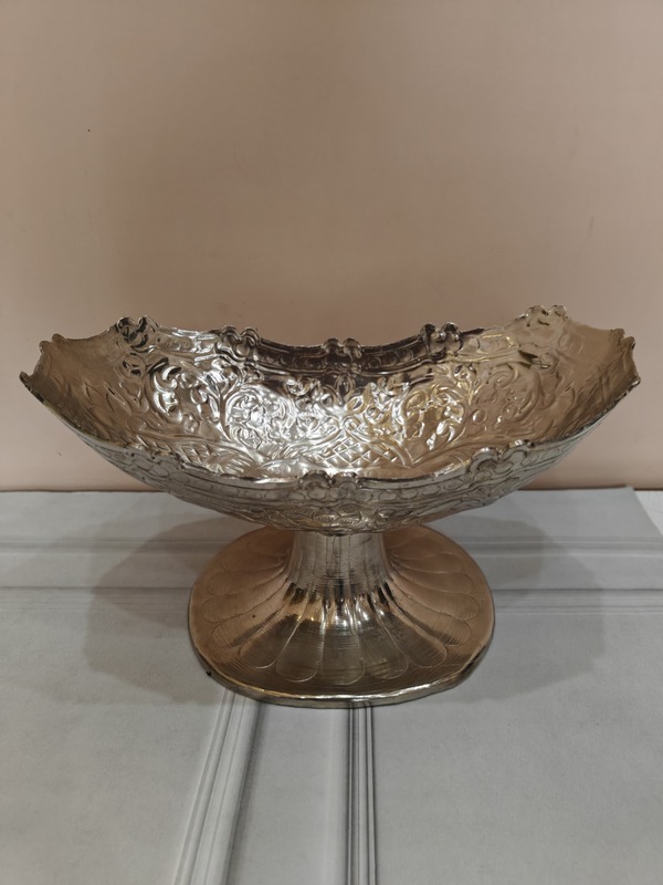 Modern Large Silver Metal Fruit Bowl – 15"x5", 8" Height